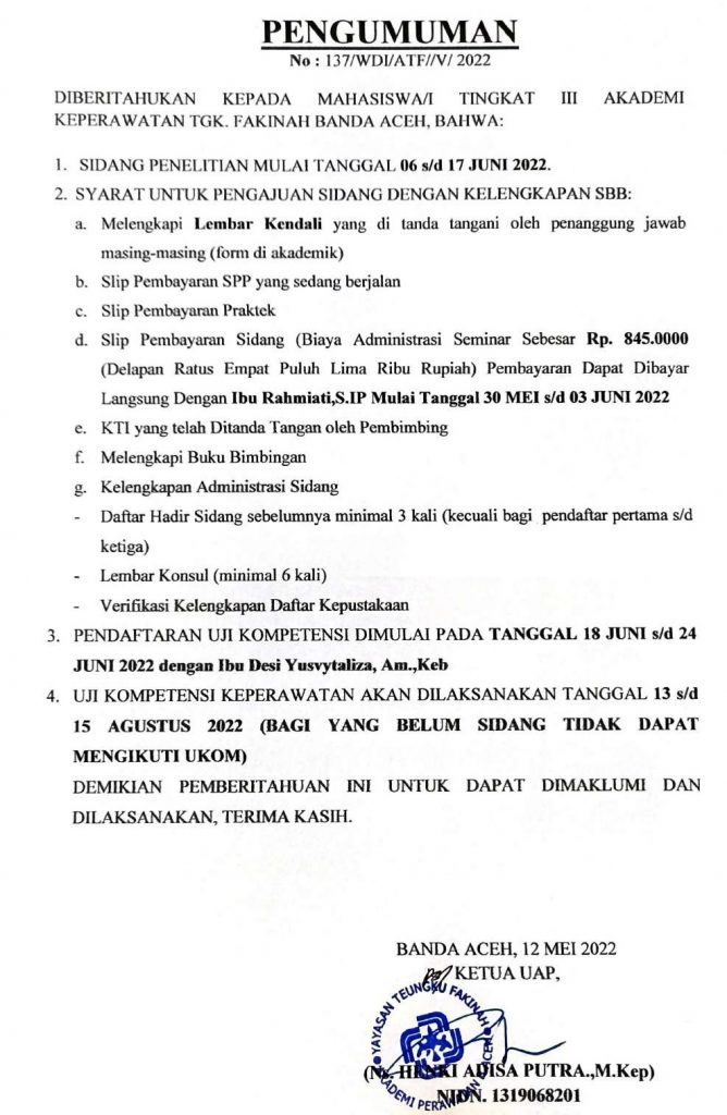 Pengumuman Penetapan Penerima Bantuan Beasiswa Mahasiswa Akper Teungku Fakinah Tahun Akademik 2025/2026