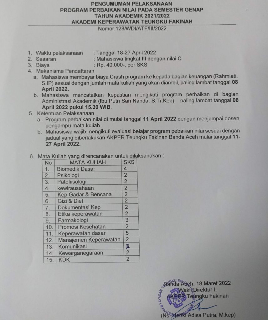 SELAMAT DATANG DI AKADEMI KEPERAWATAN TEUNGKU FAKINAH BANDA ACEH