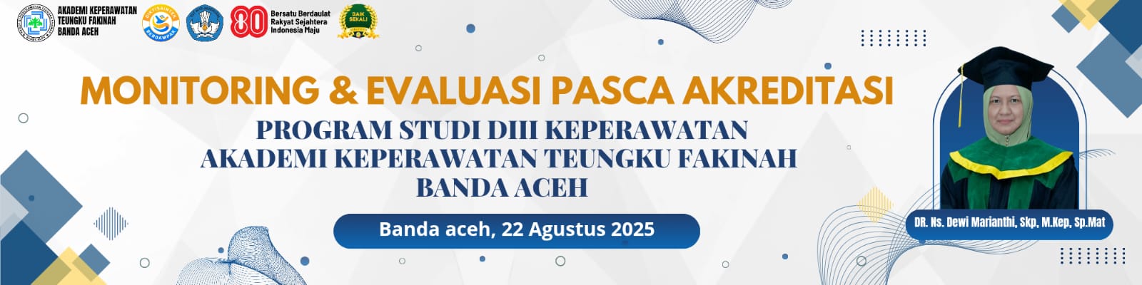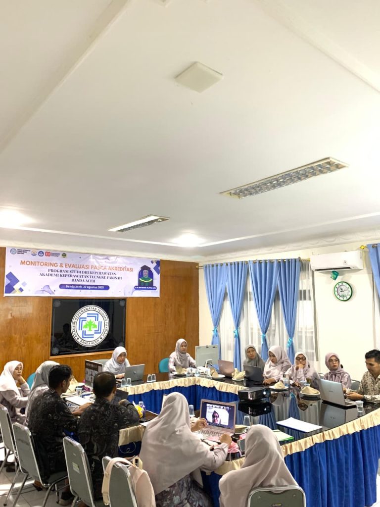 Pada hari Jumat tanggal 22 Agustus 2025, Akademi Keperawatan Teungku Fakinah Banda Aceh telah melaksanakan Asessmen Lapangan Daring (ALD) yang merupakan rangkaian kegiatan monitoring dan evaluasi pasca akreditasi oleh LAM-PTKes. Hal ini bertujuan untuk membantu Program Studi mewujudkan budaya penjaminan mutu berkelanjutan berdasarkan surat yang telah disampaikan oleh LAM-PTKes sebelumnya. Kegiatan Monev dilaksanakan dengan metode tatap muka online (visitasi secara virtual) melalui media zoom meeting dengan Assesor LAM-PTKes Ibu DR. Ns. Dewi Marianthi, SKp, M. Kep, Sp.Mat dari Institusi : D-4 – Keperawatan Poltekkes Kemenkes Aceh.